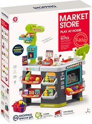 Време е за пазар! Какво ще купим за вкъщи, за да сготвим вкусна манджа? Комплектът Market Store е подходящ за деца над 3-годишна възраст. Той се състои от елементи за сглобяване на супермаркет с рафтове, пазарска кошница фигурки на плодове, фигурки на зеленчуци, продукти и аксесоари. Елементите са изработени от пластмаса и са подходящи за активна игра. Освен това, магазинът разполага със светлинни и звукови ефекти, които ще допринесат за по-реалистично изживяване по време на игра. Играта със супермаркета ще развива въображението, логическото мислене и познания за заобикалящия свят на децата. Размерите на всеки елемент ... |