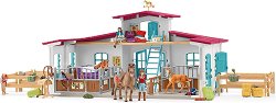 Комплектът е част от серията Клуб по езда, където ще откриете още фигурки за игра по темата. ... Умни, благородни и общителни - конете са любимци на всяко дете! Посещението в конната база е сбъдната мечта, но какво ще кажете за мини център за езда в детската стая? Не всички мечти се сбъдват лесно, но с този комплект на Schleich ще зарадвате всяко дете. С него може да се подреди подробен декор на център за езда, включващ два арабски коня и техният дом. Включени са и много аксесоари, с които собственикът на комплекта ще може да се погрижи за новите си любимци. Конюшнята е с отварящи се вратички и прозорци, освен това ... |