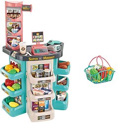 Малкият човек ще се забавлява със супермаркета. Той разполага с 47 аксесоара, които включват кошница, хранителни продукти, ПОС терминал с брояч, рафтове, игрални пари, кредитна карта и везна. Хранителните продукти включват кроасан, яйца, наденичка, морков, бисквити, сокове, маруля и чушки. Децата могат да разиграват ролеви игри между клиенти и продавачи. Клиентите могат да използват кошницата за пазаруване. Продавачите ще претеглят зеленчуците върху везната или ще подредят продуктите по стелажи. Баркод четецът излъчва светлина, а при плащане с карта ПОС терминала издава звук. Касата разполага с отделение за пари, което ...