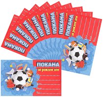 Комплектът се състои от 10 покани подходящи за рожден ден. На тях могат да се изпишат името на рожденика, за кого е поканата, датата, часът и мястото на събитието, както и телефонен номер за връзка. Всяка от поканите е с размери 11.5 x 7.5 cm. ...