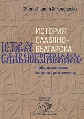 Настоящото издание на История славянобългарска се основава на предишното критическо издание на труда на о. Паисий Хилендарски, извършено от Зографската света обител през 2012 г., плод на съвместния труд на учени и монаси. Това издание е предназначено за широка читателска аудитория и затова съдържа само превода на Историята на съвременен книжовен език, както и исторически и езиков коментар, ориентиран не толкова към тесни специалисти, колкото към всички интересуващи се от историята и старината. В един кратък предговор от монашеското братство се посочва онова в труда на Хилендарския монах, което и днес е актуално и ценно. ...