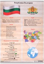 Учебното табло Република България от издателство Учмаг показва нагледно символите на Република България - знаме, герб, химн, карта, национални празници. То е изработено от винил, с вътрешни широки лайсни с дупка за окачване на стена. Таблото е лесно за сгъване и показване, има отлична видимост, без отражения на светлината. Таблото е с размери 50 x 70 cm. ... |