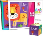 С кубчета детето ще се запознае с някои видове животни. Комплектът се състои от 9 елемента, с които ще може да сглоби 6 различни картинки. От всяка страна, елементите имат различни детайли, които при правилно нареждане ще разкрият лъв, мечка, зебра, ягуар, як и овен. Комплектът спомага за развитието на координацията и визуалната памет. Размерите на пъзела са 18 / 6 / 18 cm. ... |