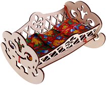 Ако вашето дете заспива трудно, или пък твърди, че куклите му заспиват трудно, значи може да ви помогне приказното сглобяемо легло-люлка от “ Woody ”. Благодарение на геометричната форма на неговите крачета, леглото-люлка дълго ще се люлее без да спре. Мекото полюшване успокоява куклата, а и детето. Легълцето пристига сглобено в картонена кутия, която наподобява приказна стая. Изпейте приспивна песен на куклата, а защо да не разкажете приказка, за да бъде това финала на деня още по-приказен. Креватчето може да се използва за ролеви игри, да научите детето си да оправя леглото си след сън, да е по-отговорно и концентрирано. ... |