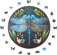 Пъзелът от Milliwood е красив и цветен. Изработен е от дърво и е прибран в дървена кутия. Състои се от 206 части и е с нестандартна форма. На картинката е изобразена красива мандала с водни растения и великолепно водно конче в средата. Комплектът включва 20 специални части с формата на животни, цветя и предмети, които отговарят на темата на изображението. В кутията ще намерите и лист самозалепващо фолио, с което да превърнете пъзела в красива картина за стената. Пъзелът е подходящ за деца над 8-годишна възраст, тийнейджъри и възрастни. ...