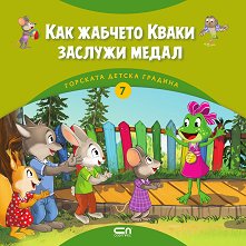 Жабчето Кваки все бърза - да стигне първа, да се нареди най-отпред, да изпревари всички... Но в своята припряност Кваки винаги нещо чупи, удря или събаря. А когато учителката в горската детска градина дава за задача на Кваки да открие в какво е най-добра, Кваки се изправя пред на пръв поглед невъзможна задача. В края на книжката е поместена карта, която посочва на детето кой от героите къде живее и предлага поглед върху цялата гора - домовете на героите от детската градина и техните семейства. Книжката е част от поредицата Горската детска градина от Димитър Риков. ... |
