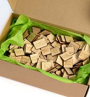 Играта Думички УРА! от Неща с душа съдържа 10 въртящи се дървени плочки за образуване на думи и 50 карти със снимки. С всяка плочка могат да се съставят точно 5 думи, като на всяка дума отговаря точно определена карта. В долния десен ъгъл на плочките има гравиран малък символ (детелина, сърце и т.н.), който съответства на символа на картите и показва кои карти към коя плочка се отнасят. Целта на играта е децата да упражняват разпознаването и произнасянето на буквите и да стимулира интереса им към четене в началния етап на изграждане на умението. Всеки родител или специалист може да използва играта по избран от него ... |
