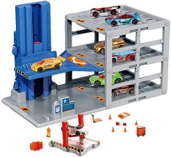 Малчуганите ще се впуснат в скоростни забавления с количките и паркинга. Той разполага с 3 етажа и асансьор с платформа. В комплекта е включена също платформа за сервиз, конуси и фигурки. Количките са 8 на брой и са оцветени в различни цветове. Децата могат да разиграват ролеви игри като се изкачват и спускат с асансьора, поправят автомобилите или ги паркират. Дайте им шанс да развият своето въображение, докато играят. Приблизителните размери на паркинга са 20 / 38 / 25 cm. ... |