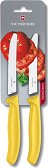 Ножовете са част от серията Swiss Classic, където ще откриете още кухненски принадлежности. ... Сетът на Victorinox съдържа 2 кухненски ножа с дължина 110 mm и назъбено острие, подходящи за рязане на плодове, зеленчуци, колбаси, както и за мазане. Изработени са от неръждаема стомана. ... |