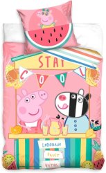 Спалният комплект е на тема Прасето Пепа, в която може да откриете още бебешки и детски продукти. ... С детския спален комплект на Sonne без усилие ще превърнете леглото на вашето дете в комфортно и уютно място за сън и почивка. Комплектът се състои от калъфка за възглавница и плик за олекотена завивка с прасето Пепа, който е снабден с цип. Той е изработен от мека и приятна на допир материя със състав 100% памук, който е нежен на допир до деликатната детска кожа. Препоръка за пране: Може да се пере в перална машина, обърнат наопаки при 40°C. Комплектът се предлага в 2 размера, спрямо размерите на матрака: За ... |