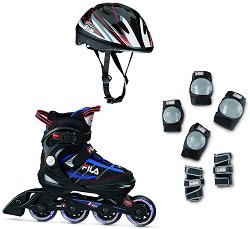 Комплектът "J-one Combo Junior" на "Fila Skates" е разработен предимно за развлекателно каране и е подходящ за начинаещи кънкьори. Той се състои от ролери, каска, протектори за колена, лакти и китки. Ролерите се предлагат в 3 размера, като всеки от тях покрива диапазон от няколко номера. Смяната на размера се осъществява посредством бутон в предната част на обувката. Шасито е монокок, изработено от композитни материали с твърдост на колелата 82А и лагери ABEC 5. Характеристики на ролерите: оптимално дишащи закопчаване: "MicroLock" катарама, връзки и велкро лента за затягане шаси: ...