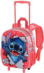 Раницата е част от серията Лило и Стич, където ще откриете още детски аксесоари. ... Раницата за детска градина от Karactermania е удобна и лека. Презрамките ѝ са меки и имат функция за регулиране на дължината им, за максимален комфорт на ползвателя. Раницата е изработена от текстил и пластмаса. Тя разполага с подплатен гръб, 1 основно отделение, което се затваря с цип и 2 странични джоба с ластици. В допълнение тя има 3D елементи, къса дръжка за носене в ръка, лента за закачане на куфар, колелца и телескопична дръжка за дърпане. Характеристики на раницата: подплатен гръб регулируеми презрамки основно ... |