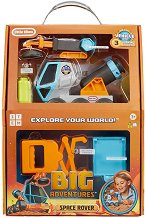 Комплектът от Little Tikes е подходящ за деца над 3-годишна възраст. Той се състои от луноход с вграден микроскоп, магнитен кран, контейнер и разтегателна щипка. Микроскопът има увеличителна способност до 3 пъти и с него могат да се изследват растения, насекоми, и различни проби. Магнитът на крана може да захваща контейнера, в който също има магнит. Разтегателната щипка също може да захваща различни предмети. Заниманието с комплекта ще насърчи децата да играят, учат и изследват заобикалящия ги свят. Размерите на лунохода са 22 / 13 / 53 cm. За играчката са нужни 3 батерии SR44, включени в комплекта с демонстрационна ...