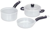 Вашето дете мечтае да стане велик готвач? С комплекта от съдове за готвене на "Klein" то ще се приближи до изпълнението на своята мечта. Комплектът се състои от тенджера с капак, дълбок и плитък тиган. С него малчуганите ще могат да "сготвят" своите любими ястия и да измислят собствени рецепти. Елементите са изработени от здрава пластмаса, благодарение на което ще могат да се използват за дълго време. А за да е по-забавна играта, можете да закупите и различни фигурки на плодове, зеленчуци и месни продукти, които детето да "сготви". Играта с комплекта ще развива детската креативност и ... |