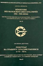 Поредицата Репертоар на гръцките украсени ръкописи е реализирана от проф. Аксиния Джурова в продължение на 15 години и включва три тома, както следва: Репертоар на украсените гръцки ръкописи от IX - X век - том 1 Репертоар на украсените гръцки ръкописи от XI - XII век - том 2 Репертоар на украсените гръцки ръкописи от XIII - XIV век - том 3 Трите тома са част от серията на Центъра Иван Дуйчев Monumenta Slavico-Byzantina et Medaevalia Europensia № XXI, XXII, XXIII и са плод на близо 50 години изследвания на автора на най-голямата сбирка от гръцки ръкописи, съхранени на територията на България, обхващаща ... |