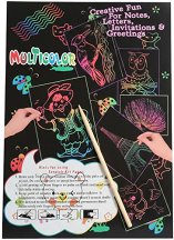 Скреч хартията предлага забавно и креативно изживяване за малки и големи. Всеки лист е покрит с черен слой, който при изстъргване разкрива пъстри и ярки цветове отдолу. Тя е идеална за рисуване, създаване на картички, декоративни елементи или просто за творческо забавление. Комплектът съдържа 5 листа във формат А4 (21 x 29.7 cm), подходящи за използване с дървена пръчица или друг инструмент за изстъргване. Перфектен избор за училище, арт занимания и хоби проекти, стимулиращ въображението и фината моторика. ...
