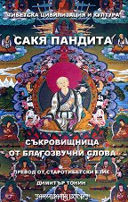Превод от старотибетски език: Димитър Тонин. Двуезично издание на български и старотибетски език. ... Това издание на известното поетично произведение на Сакя Пандита "Субхашита Ратна Нидхи" ("Скъпоценна съкровищница от благозвучни слова") съдържа 234 четиристишия (легшади), с които общодостъпно се излагат религиозни, морални и житейски мъдри наставления. Със своите забележителни достойнства произведението се нарежда сред върховете на световната афористична литература. ... |