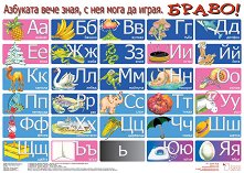 Таблото "Българската азбука" е двустранно - на лицевата страна са показани печатните букви, думички и предмети с всяка една буква от азбуката, а задната страна е предназначена за упражняване на изписването им. То е изработено от гланциран картон, което позволява след писане с флумастер, буквите да бъдат изтрити. То е с размери 21 x 29.5 cm. Таблото "Българската азбука" се предлага в два варианта: табло табло + CD Дискът съдържа песни и стихчета за буквите от А до Я. ... |