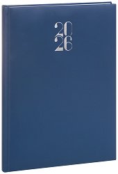 Календар-бележникът е част от колекцията Egadi и е подходящ за водене на записки в университета или на работното място. Също така за организиране и годишно планиране през 2026 година, разпределението е един ден на страница. Характеристики на календар-бележника: формат: A4 (21.7 x 30.5 cm); тип хартия: бяла; твърда корица, облечена с еко кожа; текстилна лента за разделяне; страница за лична информация; календар за 2025, 2026 и 2027 година; страници за важни дати; таблица с национални почивни дни по света; таблица за часовите зони по света и съответстващо време в 12:00 на обяд по Гринуич; таблица с климат и ... |