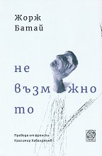 Невъзможното (1962) е произведение на Жорж Батай в три части (История за плъхове, Дианус и Орестия), в което треската на желанието е неразривно свързана с треската на агонията. То описва тревожността на разказвача пред женската голота, пред физическата прегръдка с жена и е своеобразно продължение на опита за трансгресията от Вътрешният опит (1943), който по-късно Батай теоретизира в Еротизмът (1957). Този вътрешен опит е преди всичко преживяване на истината, на невъзможното като празнота. Поезията в третата част, Орестия, е заявена като "омраза към поезията", извеждаща докрай невъзможността за изразяване с ... |