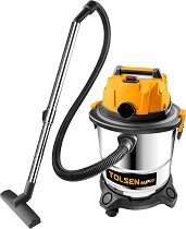 Електрическата прахосмукачка на Tolsen е предназначена за сухо и мокро почистване и работи с HEPA филтър. Има двигател с мощност 1200 W, който предлага сила на засмукване от 17 kPa и разполага с резервоар, изработен от неръждаема стомана за висока издръжливост. Оборудвана е с удобна дръжка в горната част на капака за по-голям комфорт по време на експлоатация и е снабдена с колелца за лесно транспортиране. Прахосмукачката разполага с гъвкав маркуч с дължина 1.5 m, има дебит 32 l/sec и капацитет на резервоара 30 l. Предлага се в комплект с 2 стоманени тръби, филтър гъба, 2 в 1 четка за сухо и мокро почистване, плоска дюза, ...