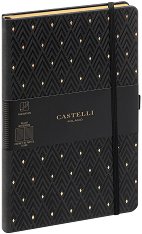 Луксозният тефтер Diamonds Gold от Castelli е подходящ за подарък на бизнес партньор или колега. Той създава не само приятно изживяване при писане, но със своя елегантен дизайн носи и частица от духа на Милано. От вътрешната страна на задната корица се намира разширяващ се джоб, в който може да съхранявате бележки. Характеристики на тефтера с ластик: размери: 13 x 21 cm; обрез на книжното тяло в черен цвят; тонирана хартия; брой страници: 192; широки редове; разделителна лента; твърди корици с красиви златисти мотиви; заоблени ъгли; ластична лента за затваряне; плик за съхранение на бележки върху задната ... |