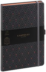 Луксозният тефтер Diamonds Copper от Castelli е подходящ за подарък на бизнес партньор или колега. Той създава не само приятно изживяване при писане, но със своя елегантен дизайн носи и частица от духа на Милано. От вътрешната страна на задната корица се намира разширяващ се джоб, в който може да съхранявате бележки. Характеристики на тефтера с ластик: размери: 13 x 21 cm; обрез на книжното тяло в тъмен графитен цвят; тонирана хартия; брой страници: 192; широки редове; разделителна лента; твърди корици с красиви диамантени мотиви в меден цвят; заоблени ъгли; ластична лента за затваряне; плик за съхранение ... |