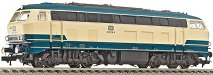 Умален модел на дизелов локомотив BR 218, използван в Германия от "Deutsche Bundesbahn". Дизеловият локомотив BR 218 е използван както за пътнически така и за товарни влакове, като максималната му скорост е 160 km/h. Характеристики на модела: захранване - прав ток (DC) дължина на локомотива - 18.9 cm възможност за поставяне на цифров декодер - NEM 651 с конектор мотор - 5-полюсен електрически маховик - да шахти за закачане - NEM 362 без KK-кинематика задвижващи колела - 2 броя светлини на локомотива - 3 бели и 2 червени светлини отпред ... |