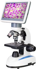 Цифровият микроскоп D85L LCD от Levenhuk е мощен инструмент за детайлни наблюдения на микроскопски проби с увеличение от 40x до 1600x. Той е оборудван с 7" LCD дисплей, който осигурява ясен изглед в реално време, без необходимост от външен монитор. Вградената 2 MP камера позволява заснемане на изображения и видео, които се съхраняват на карта памет. Оптичната система включва ахроматични лещи, които осигуряват рязко и детайлно изображение. Двойната LED осветителна система позволява работа с прозрачни и непрозрачни проби, а яркостта може да се регулира. Микроскопът поддържа както мрежово захранване, така и работа на ... |