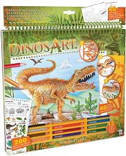 Тази книжка от DinosArt е различна от обикновените книжки за рисуване и оцветяване. Тя съдържа шаблони, моливи и стикери, с които детето ще може да рисува и оцветява и да създава многобройни пейзажи на любимите му динозаври. Комплектът съдържа: 40 скици на динозаври; 12 цветни молива; 200 стикера; шаблони. Книжката е с размери: 30 / 31.5 / 2.3 cm. ...