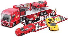 Накарайте детето ви да се почувства специално, подарявайки му този впечатляващ комплект на „ Bburago “ от серията “ Ferrari Race & Play “. Оригинален и уникален, комплектът ще пренесе детето ви в света на бързите скорости, правейки го част от отборът на “Ferrari“. Детето ви ще може да превози своето червено Ферари до пистите чрез оригиналния камион транспортьор на състезателни коли. За по-голям реализъм камионът има разгъващи се странични панели и подвижна задна рампа. Разтваряйки ги, ще получите автомобилния сервиз на червения тим. В него детето ще може да качи червеното си автентично Ферари с дължина 10 cm, изработено ... |