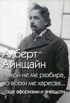 Алберт Айнщайн (1879 - 1955), носител на Нобелова награда за физика, е признат за най-влиятелния учен на ХХ век. Блестящ интелектуалец с афористична мисъл, ангажиран с редица обществени каузи, той още приживе се превръща в мит. Айнщайн е едно от най-разпознаваемите лица в цял свят, а името му - синоним на гений."Две неща са безкрайни: вселената и човешката глупост, но за първото не съм сигурен.""Ако фактите не подкрепят теорията, променете фактите.""В каква жалка епоха живеем, щом е по-лесно да разцепим атома, отколкото да разбием предразсъдък.""Никога не мисля за бъдещето - то така ...
