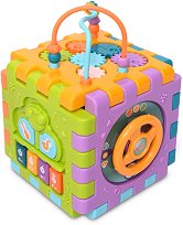 Активният куб "6 Face" на "Lorelli" е играчка, която ще провокира малките деца да играят и да се забавляват, докато развиват своите фини двигателни умения. Всяка страна на кубчето е различна. Сред активностите, които то предлага има пиано, разнообразни детски мелодии, телефон с шайба, вратичка с ключ и огледало, зъбни колела, лабиринт, сортер с 4 фигурки и автомобилен волан. Кубчето може да се разглобява и сглобява винаги, когато пожелаете. Предвидена е опция за регулиране силата на звука в две нива, както и за пълното му изключване. За музикалните функции на играчката са необходими 3 батерии тип AA ... |