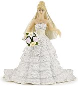 Едва ли има момиченце, което не мечтае да стане булка и да облече прекрасна дълга рокля - точно като тези на принцесите от приказките. Дали това е Пепеляшка или Спящата красавица? А може би принцесата от "Магарешката кожа" на Шарл Перо? Това не знаем, но явно тази нежна принцеса вече е намерила своя прекрасен принц. Сега тя е готова да застане пред олтара, за да се закълне във вечна вярност и любов, и двамата да заживеят щастливо. Тази фигурка представя изящна блондинка в класическа бяла рокля, изработена от ръчно плетена брюкселска дантела. Корсетът подчертава тънката талия на красавицата. В дясната си ръка ... |