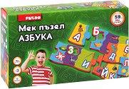 Пъзелът е подходящ за деца над 4 години, които тепърва се запознават с буквите. Всяка буква е представена от два елемента - самата буква и животно (предмет), наименованието на което започва с тази буква. Размерите на един елемент са: 9.2 cm x 5.5 cm, а на сглобената буква е съответно: 9.2 cm x 11 cm. ... |