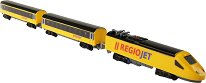 Влакчетата с релси са сред любимите играчки на много деца. А комплекта Rappa е подходящ за малчугани над 3-годишна възраст. Той се състои от локомотив, 2 вагона, 8 прави и 12 извити релси. Влакчето разполага със светлинни и звукови ефекти, а освен това върви напред. То се активира посредством натискане на бутон. За да направите играта на детето си още по-интересна и забавна, комбинирайте комплекта с останалите релси и влакчета RegioJet от Rappa. Локомотивът е с приблизителна дължина 23.5 cm, а вагонът е 30 cm. Влакчето работи с 2 батерии 1.5V AA, които можете да закупите отделно. ... |