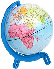 Малък географски глобус с компактна стойка. Характеристики: политическа карта в 5 цветови нюанса, открояващи всеки континент; език: български; материал: пластмаса; диаметър: 16 cm; височина със стойка - 19 cm; въртяща се сфера. Инструкция за употреба: да се избягва излагане на директна слънчева светлина; да се поставя в сухи помещения далеч от радиатори или други източници на топлина. ... |