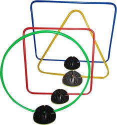 Комплектът от Учмаг е предназначен за спорт, упражнения и игри, в които децата могат да пълзят, скачат, прескачат, промушват се и преминават през препятствия. Частите могат да се използват по различни начини в часовете по физическо възпитание и спорт. Освен това комплектът запознава малчуганите с основни геометрични фигури. Всичко е поставено в торба от полиестер, за удобно съхранение и пренасяне. Размерите на препятствията са: кръг ∅ 70 cm квадрат 70 x 70 cm триъгълник 70 / 70 / 70 cm правоъгълник 90 x 70 cm ... |