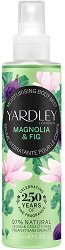 Насладете се на свежо усещане през целия ден с парфюмния спрей-мист Magnolia & Fig от Yardley. Той притежава плодово-зелен, флорален аромат, който се разкрива със свежи и сочни връхни нотки бергамот, сладка смокиня и плодове касис. Те ви отвеждат до луксозно флорално сърце от магнолия, жасмин самбак и ветивер. Базата от акорди гваяково дърво и пачули внася топъл и чувствен завършек на аромата. Мистът Yardley Magnolia & Fig не само ще освежи кожата ви, но и ще я хидратира. Това се дължи на вложените във формулата овлажняващи съставки. Тя е обогатена с екстракт от бадем, който омекотява, тонизира и подхранва кожата. ... |