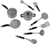 С комплекта от "Bigjigs Toys" детето ви ще развива своето въображение, докато се забавлява! Той съдържа 2 тигана, 2 тенджери с капак, тава за печене, дървена лъжица и шпатула и ръкохватка за вадене на тавата с вкусно печено. Приборите са изработени от метал и дърво, а ръкохватките са текстилни. За да е максимално забавна и интересна ролевата игра, можете да закупите детска кухня. ... |