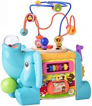 Дидактическият куб от Viga Toys е чудесна играчка за малките любопитковци. Той е изработен от дърво, оцветено в нежни цветове и разполага с няколко активности. Всяка от страните на играчката представлява различна игра - зъбни колела, лабиринт, спирала с цветни мъниста, сметало, въртящи се плочки и сортер. Капакът на кубчето може да се маха. Освен това той разполага и с дупка, през която детето да пуска дървените животни и да ги съхранява. Играчката ще помага на малчуганите да развият фини двигателни умения, концентрация, координация на движенията, както и да научат основните цветове, форми и животни. Кубът е с ...