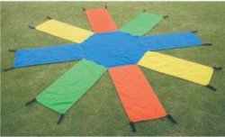 Парашутът е изработен от четирицветна полиестерна тъкан, като има осем цветни панела с дръжки. Играта с него развива координацията и чувството за ритъм. Може да се използва за игра както навън, така и вътре. Във всеки край на парашута има две здрави дръжки, което позволява включване на до 16 деца по време на игра. Диаметърът на парашута е ∅ 350 cm. ... |