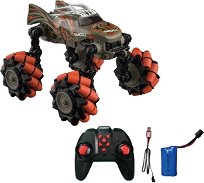 Комплектът от Crazon е подходящ за деца над 3-годишна възраст. Той се състои от нестандартен джип, зареждаща се батерия с USB кабел и дистанционно управление. Превозното средство разполага с 3 грайферни гуми и е изработено от пластмаса. То ще издържи на много приключения. Дистанционното управление има обхват до 25 m и може да задвижва превозното средство във всички посоки, а освен това активира светлинни, звукови и димни ефекти. Джипът работи с вградена батерия, която се зарежда посредством USB кабел, включен в комплекта, а дистанционното с 2 батерии AA, които се закупуват отделно. Характеристики: дистанционно ... |