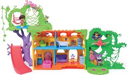 Къщата за игра от Spin Master пренася децата в тропическия свят на Дора Изследователката с впечатляващата си ширина от около 90 cm и множество зони за игра. Къщичката комбинира елементи на класическа къща за кукли и приключенски площад, изпълнен с интерактивни детайли, звуци и забавни изненади. Вътрешното пространство включва цветни стаи, мебели и аксесоари - диван, вана и други елементи, вдъхновени от сериала. Навън малчуганите ще открият люлееща се лиана, люлка, разклатен мост, маймунски лостове, вълшебна пързалка, танцуващо цвете и изскачащ Суайпър. В хола е разположен бутон, който активира звукови ефекти и двуезични ...