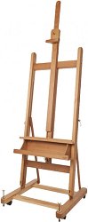 Стативът от "Mabef е изработен от масивна, букова дървесина, обработена с маслен препарат, за да се подсили устойчивостта на вода, влага и химикали. Той е предназначен за удобно позициониране и закрепване на платна за рисуване с размери до 225 cm. Художественият статив е снабден с удължен централен мост и регулируем работен плот. Регулирането на работния ъгъл се осигурява от система за преобръщане, а задният ограничителен винт осигурява сигурно заключване на стълба и платното в желаното положение. Също така има отделение с размери 13 / 48 / 12.5 cm, подходящо за бои, четки, шпакли, въглени, пастели и други ... |