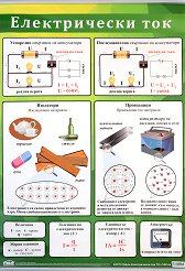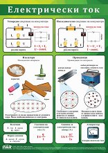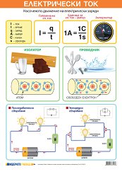 Учебното табло "Електрически ток" е ламинирано, с лайсни и въже за закачане. Таблото е с размери 70 x 100 cm. Таблото съдържа информация за: насочено движение на електрически заряди; изолатор; проводник; последователно свързване; успоредно свързване. ... |