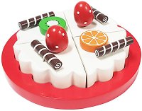 Тортата от Bass & Bass е перфектна за малките сладкари, които искат да разкрият кулинарните си таланти! Съставена от 4 парчета, свързани с велкро, тя позволява лесно разрязване с включения дървен нож. Украсена с пурички, ягоди, портокалово резенче и киви, тортата е чудесен начин децата да развиват въображението и фината си моторика, докато играят и създават собствени сладкарски шедьоври. ...