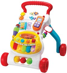 В етапа на прохождане мъничето може да използва проходилката като играчка за бутане, с която постепенно да се научи да пази равновесие, да придобие увереност и така да започне да прави първите си самостоятелни стъпки с лекота. Заедно с това, проходилка тип уокър ще бъде и много занимателна за детето. Тя ще му предложи няколко активности, сред които: светлинни и звукови ефекти, пиано и телефон, които могат да се свалят от количката и да се играе с тях самостоятелно, звукови механизми - книжка, ноти, дрънкалки, зъбни колела и огледалце. Колелата на количката от "WinFun" са стабилни и се задвижват лесно, а ...