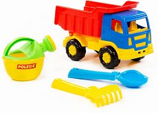 Детският комплект ще зарадва малчуганите. Той е подходящ за деца над 1-годишна възраст и се състои от камион самосвал, лопатка, гребло и лейка за игра с пясък. Те са изработени от пластмаса. Ремаркето на камиончето може да се вдига и сваля, а освен това колелцата му се въртят, което позволява на играчката да се движи напред и назад. Комплектът е с размери, съобразени с малките детски ръчички и ще забавлява малчуганите на плажа или в парка с часове! Камиончето е с размери 22 / 16.5 / 11 cm. Важно! Цветът на продукта може да се различава от показания на снимката. При поръчка ще го получите в цвят на случаен принцип. ... |