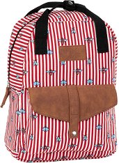 Ученическата раница, част от серията "Back Up" на "Derform" е с нежен дизайн на пеперуди и цветя. Гърбът и дъното ѝ са подплатени. Презрамките също са подплатени и меки за по-голямо удобство при продължително носене. Раницата има едно основно отделение за учебници, несесер, химикалки и други ученически пособия. То се затваря с двупосочен цип, а вътре в него има отделение за лаптоп и "тайно" текстилно джобче за телефон или документи. Допълнителният джоб се затваря посредством капак с копче и е подходящ за дребни вещи. Също така раницата има 2 странични джоба за чадър или бутилка. ... |
